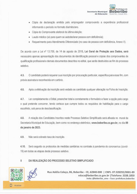 Município de Beberibe pública edital de processo seletivo para diretor e coordenador escolar